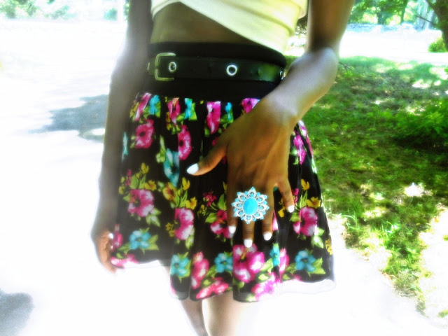 American apparel sash, sis old skirt, vintage belt; Forever 21 hat; Payless shoes